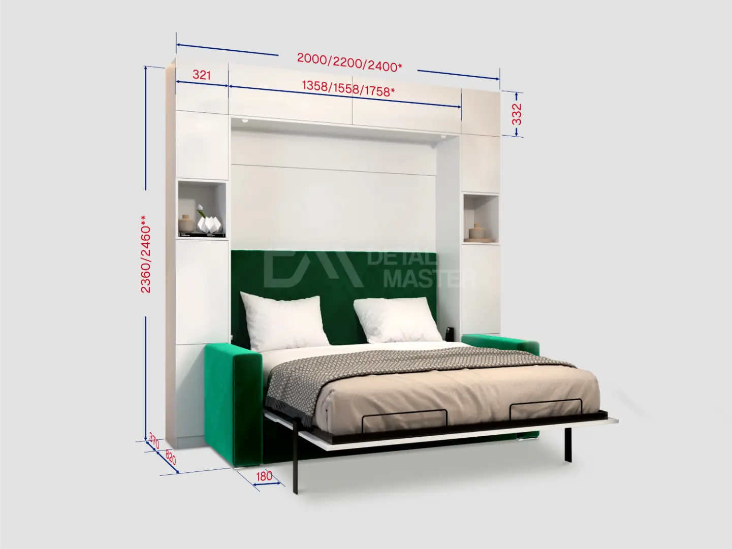 Дополнительные опции, такие как: освещение, зарядное устройство, розетки, мягкое изголовье, матрас, мягкий борт - не входят в стоимость шкаф-кровати "Comfort Space Balance". Вы всегда можете самостоятельно их добавить в опциях или написать менеджеру при оформлении заказа.